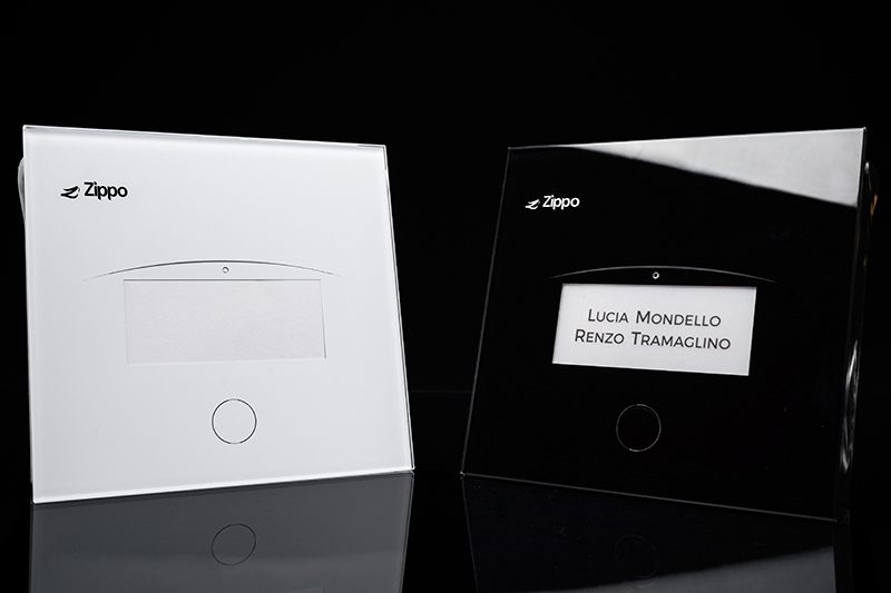 Ultimo ritrovato con tanto di brevetto, è una targa luminosa con pulsante di chiamata incorporato installabile nelle più comuni scatole a tre posti.